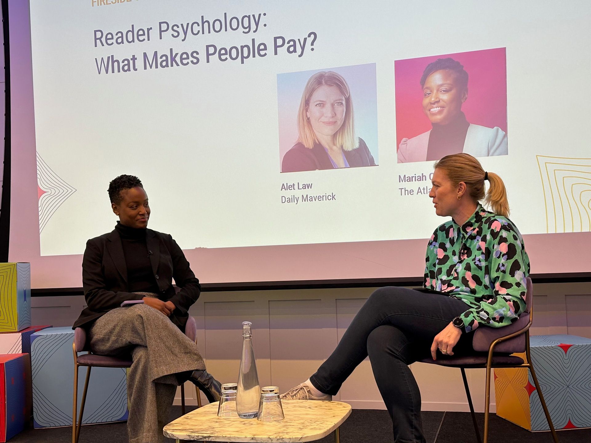 Mariah Craddick, Executive Director of Product at The Atlantic (left), in a fireside chat at the Journalism AI Festival last week