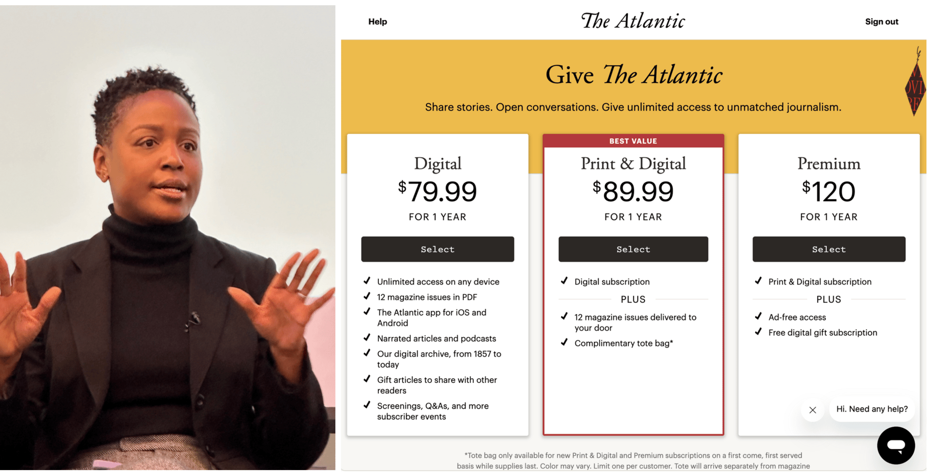 For younger audiences—which at The Atlantic means 30 to 45—they've opened free access to all US public high schools and offer group subscriptions to universities globally. They're also elevating writers as the face of the brand, leaning into TikTok videos and events. "Younger people tend to trust people," Craddick noted.